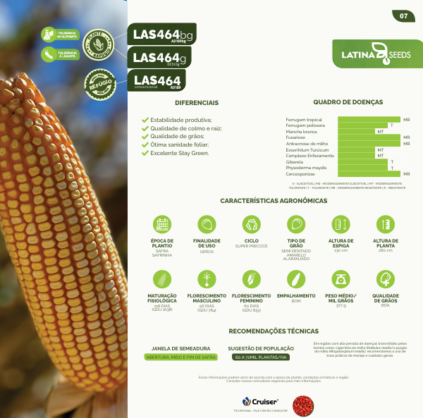 Observação: LAS 464 na versão Convencional / Resistente a Glifosato e Resistente a Lagartas e Glifosato