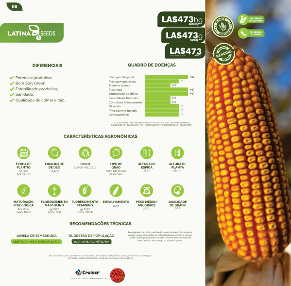 Observação: LAS 473 na versão Convencional / Resistente a Glifosato e Resistente a Lagartas e Glifosato