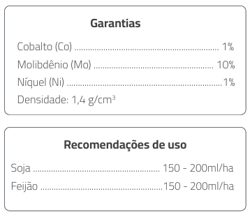 Prime CoMo é um fertilizante mineral misto para uso via foliar à base de Cobalto (Co), Molibdênio (Mo), Ácido carboxílico e Aminoácidos. O Molibdênio faz parte da enzima nitrogenase, responsável pelo processo de Fixação Biológica de Nitrogênio (FBN) e da leghemoglobina, determinante da atividade dos nódulos (Rizóbios), enquanto que o Cobalto participa da vitamina B12 (Cobalamina), necessária à síntese de leghemoglobina. Além de promover a FBN, Prime CoMo melhora enraizamento e desenvolvimento inicial das plantas, garantindo um estande ideal. Melhora a estrutura celular, conferindo maior resistência da planta ao estresse hídrico. Compatível com defensivos químicos, deve ser adicionado a calda de pulverização antes de quaisquer outros produtos.